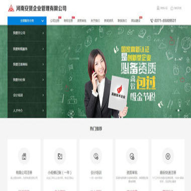 河南安贤企业管理有限公司是一家集工商咨询、代理记账、财务顾问、会计培训、企业资质、证件*、商标服务、企业策划、人才中介于一体的综合性公司。 网站展示: